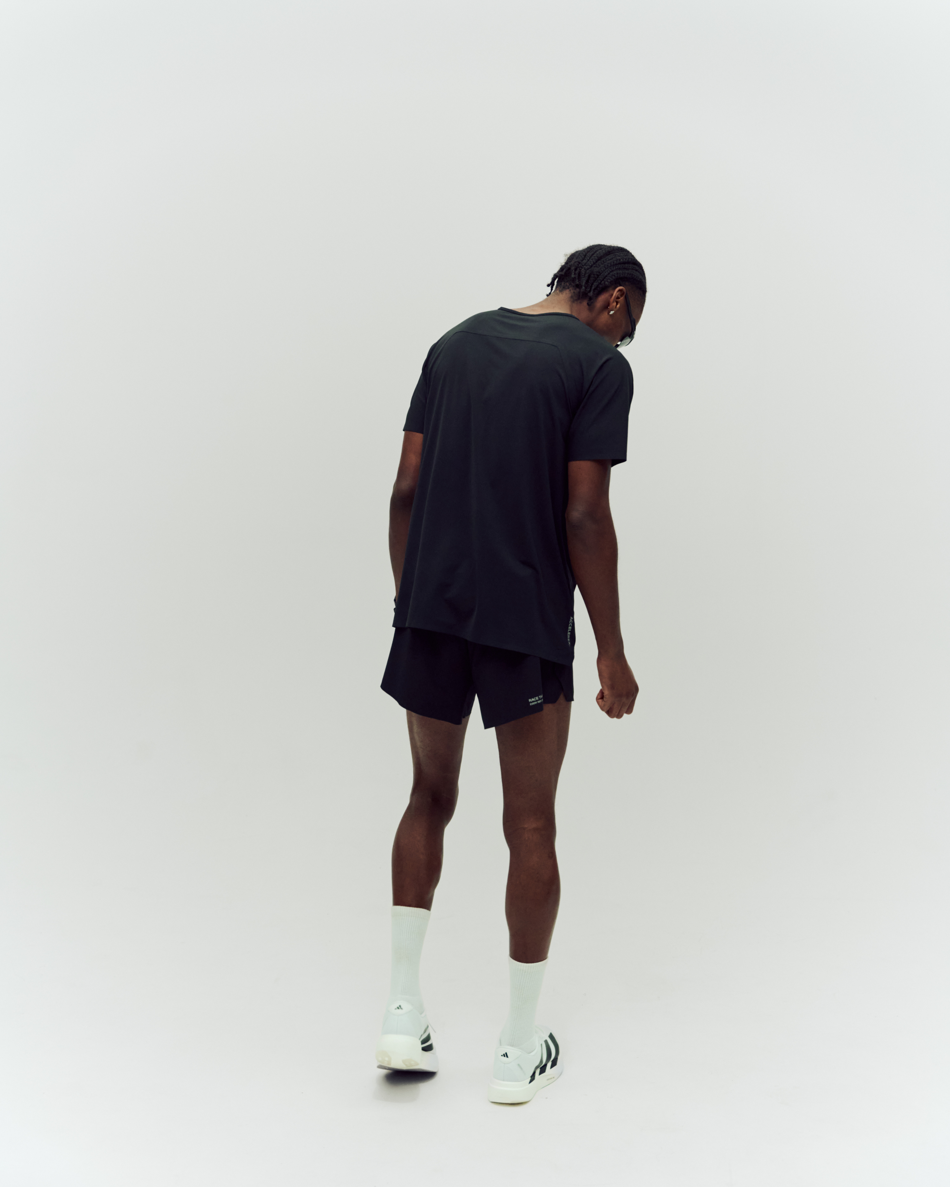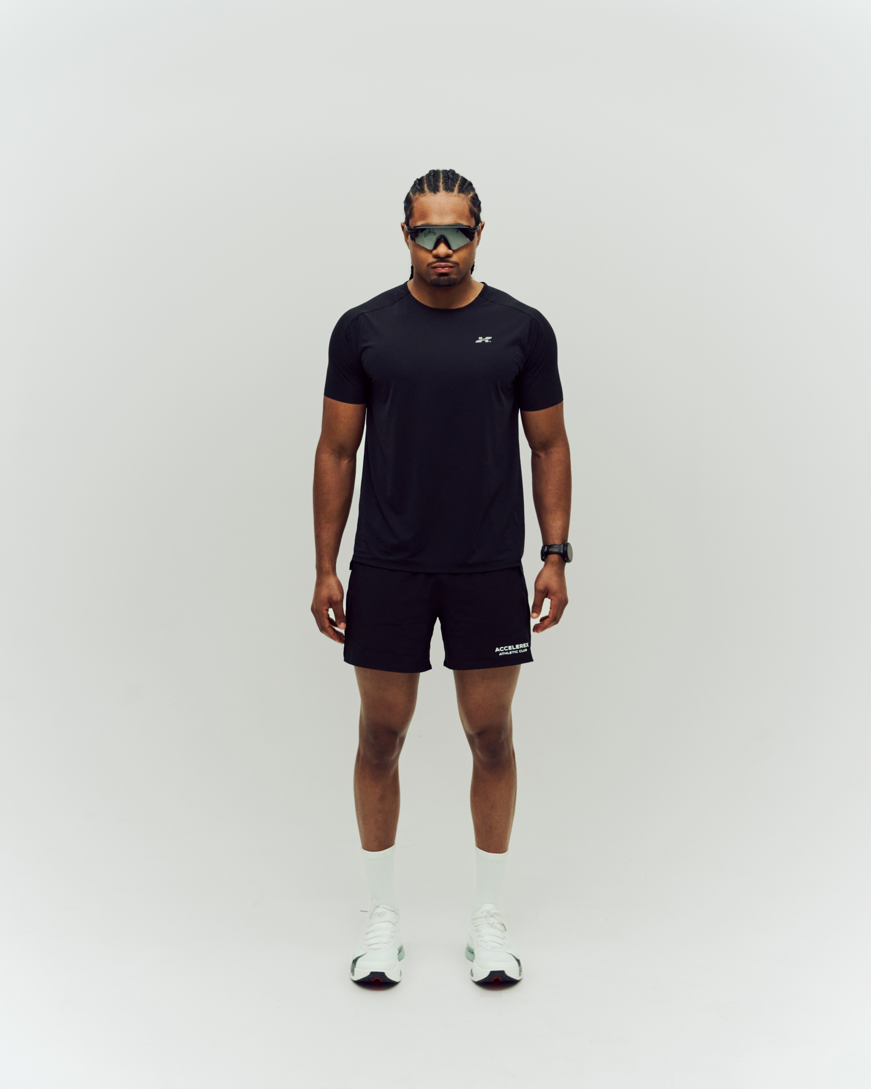 Logo icon on the chest, Accelerex vertical print on the lower right.